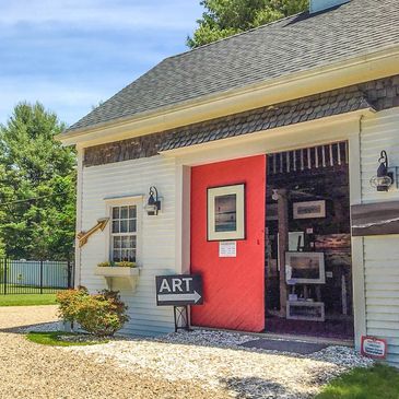 Built in the 1800's, our Cape Cod "Art Barn" exudes a cool artistic vibe. With its paint stained walls and doors, the wide plank wood floors, and exposed wooden rafters above, this special building says "art" to all who enter through its inviting red doors!